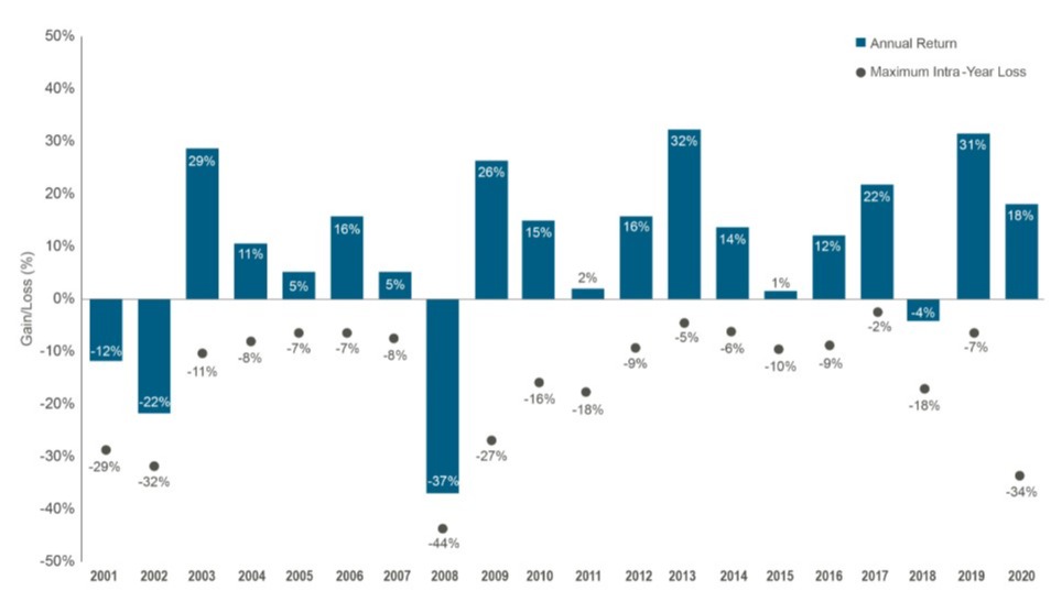 A favorite quote of ours at Baird is “short-term volatility is the cost to participate in the stock market’s long-term gains.” It’s our way of acknowledging that selloffs, corrections and even bear markets are not just normal – they’re a part of the process of being a long-term investor. If there were no volatility or risk, there would be no reason for stocks to perform so well over the long run.